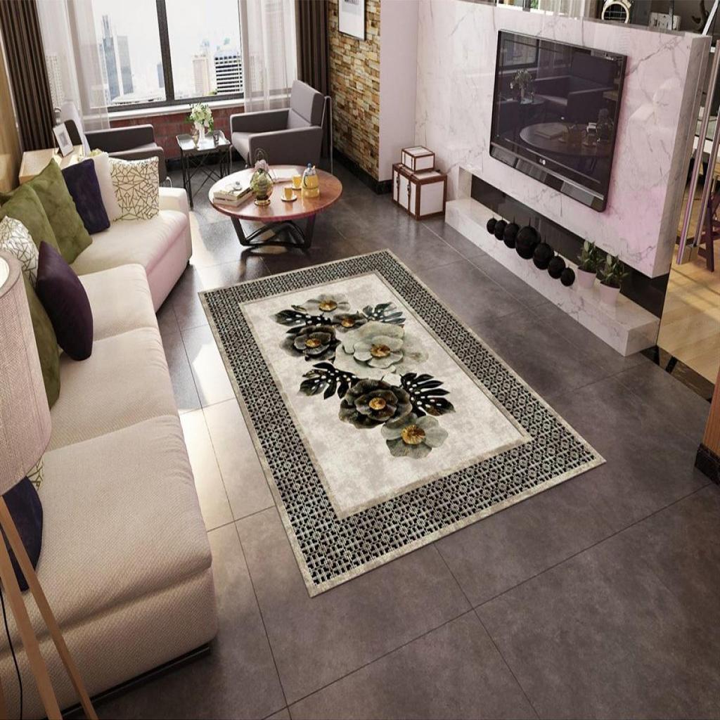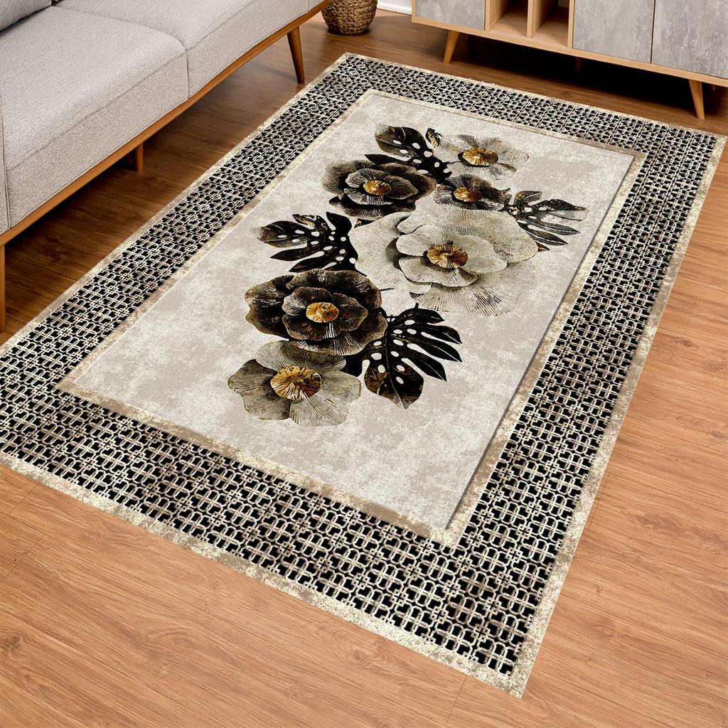 EPeddler Домашний декоративный бежевый цветочный узор Цифровая печать Моющаяся нескользящая кожаная основа Новое поколение Ковер для гостиной, прихожей, спальни