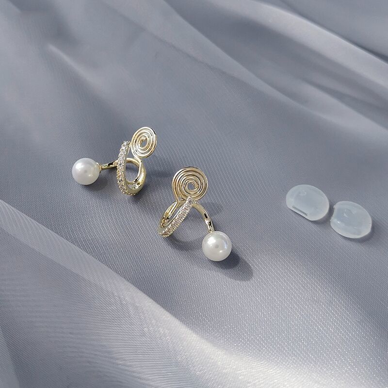 Новые серьги с искусственным жемчугом, катушка от комаров, стразы, зажим для ушей, без пирсинга, женский
