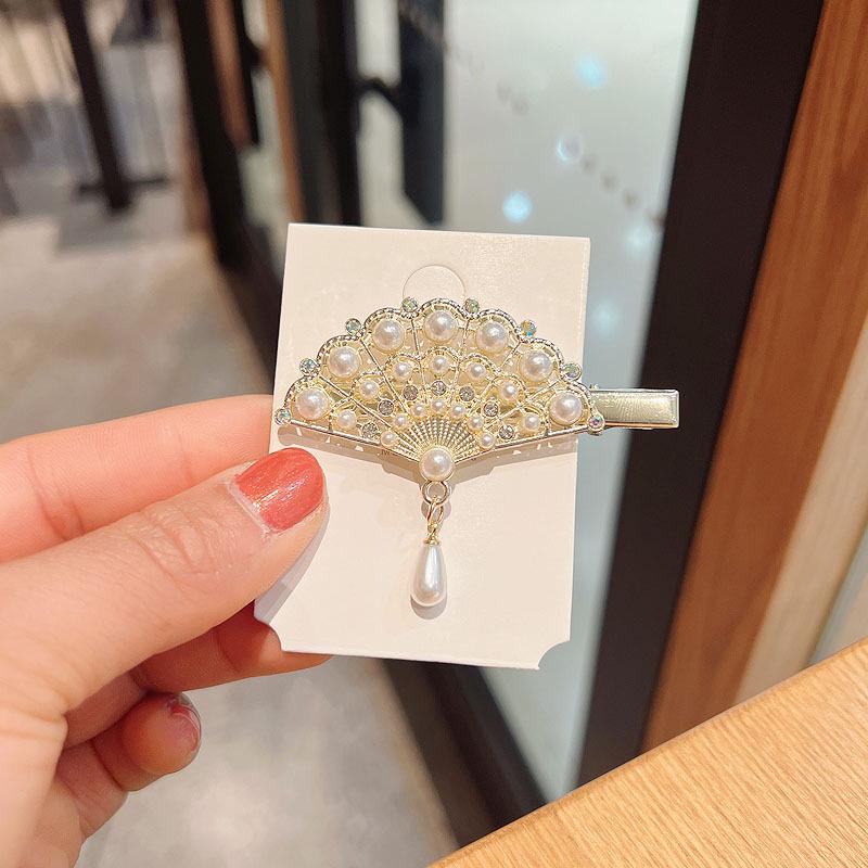 Головные уборы в древнем стиле Ханфу, заколка для волос с веером, жемчужная бахрома, заколка в виде утиного клюва, боковая заколка для волос, заколка для волос с диском феи, заколка для волос с любовью