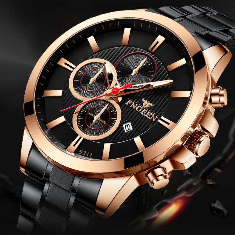 Лучший бренд, спортивные часы, повседневные мужские водонепроницаемые кварцевые часы, светящиеся мужские деловые часы из черного золота — купить товар онлайн с бесплатной доставкой до всему миру!