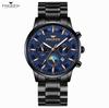 Лучшие брендовые часы, мужские водонепроницаемые трендовые черные часы с ремешком из нержавеющей стали и календарем для мужчин