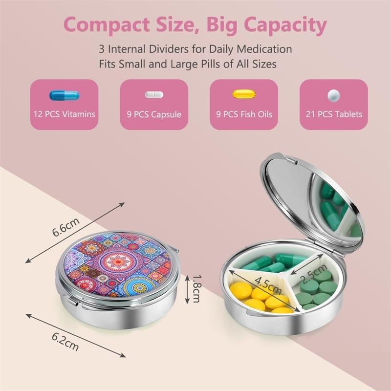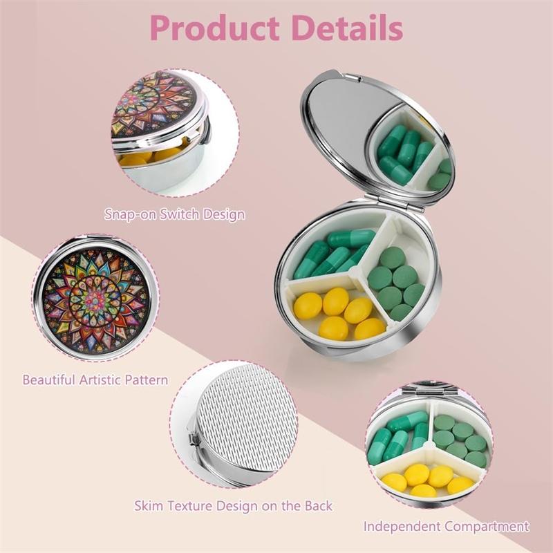 Портативный футляр для таблеток с 3 отделениями, 1 шт., с зеркалом, ящик для хранения лекарств, дозатор для таблеток
