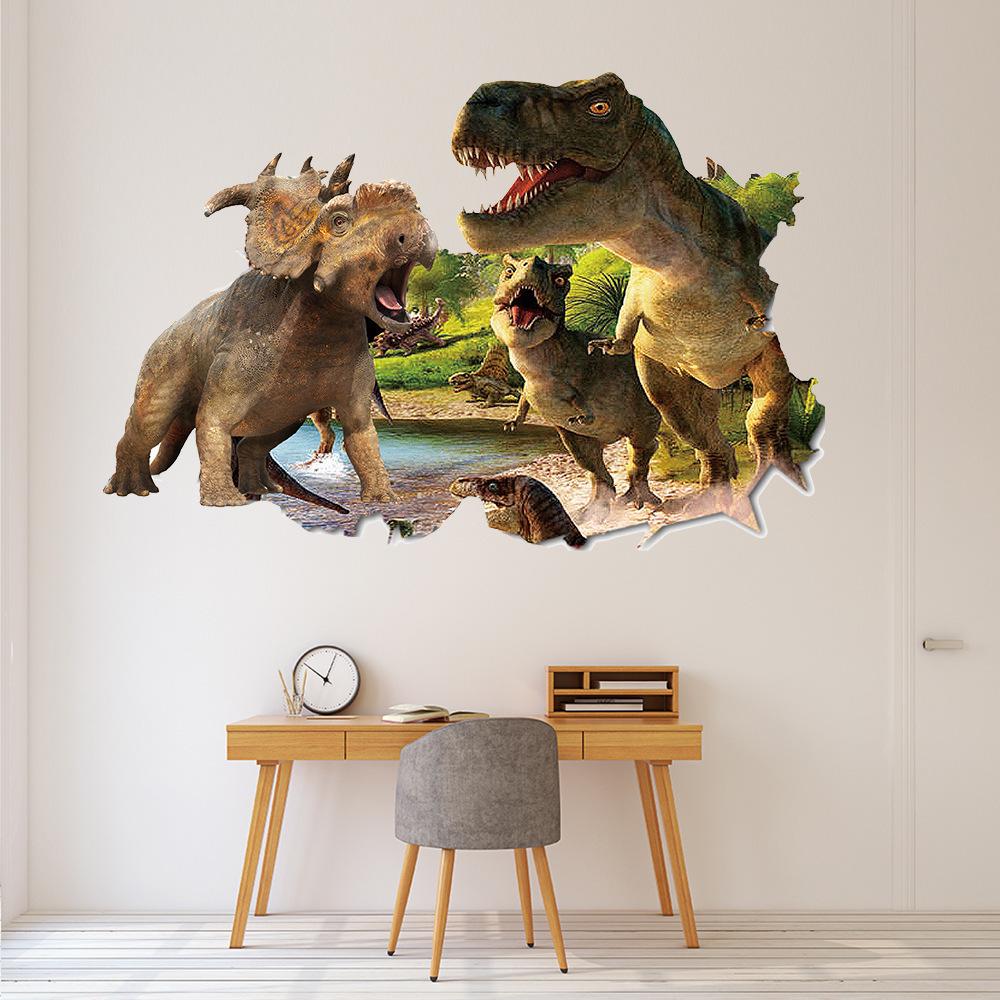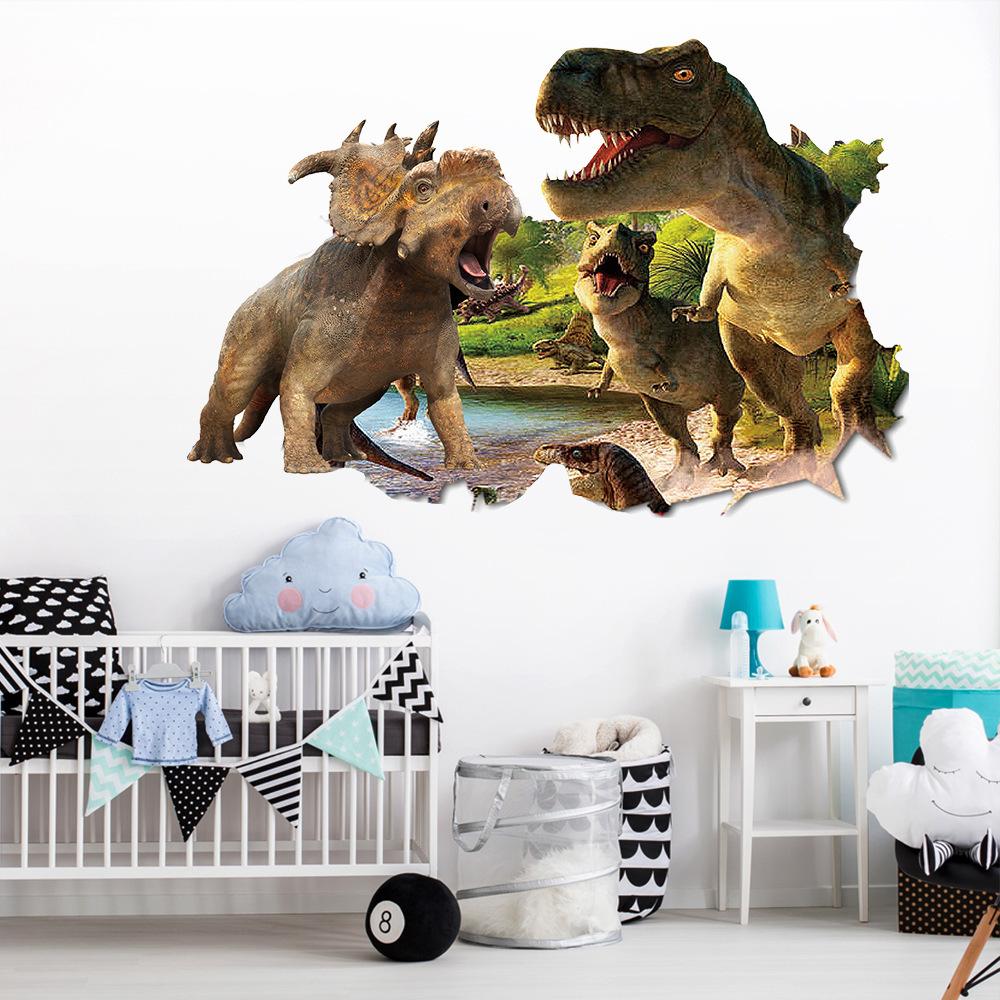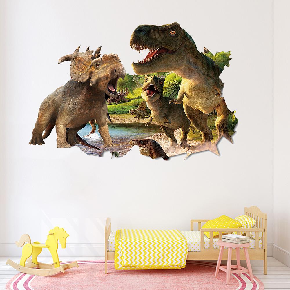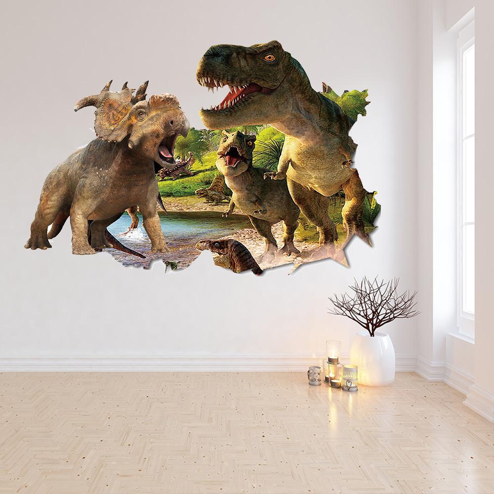 50x70 см снаружи сломанной стены динозавр Юрского периода 3d виниловые наклейки с животными украшение детской комнаты настенные художественные наклейки