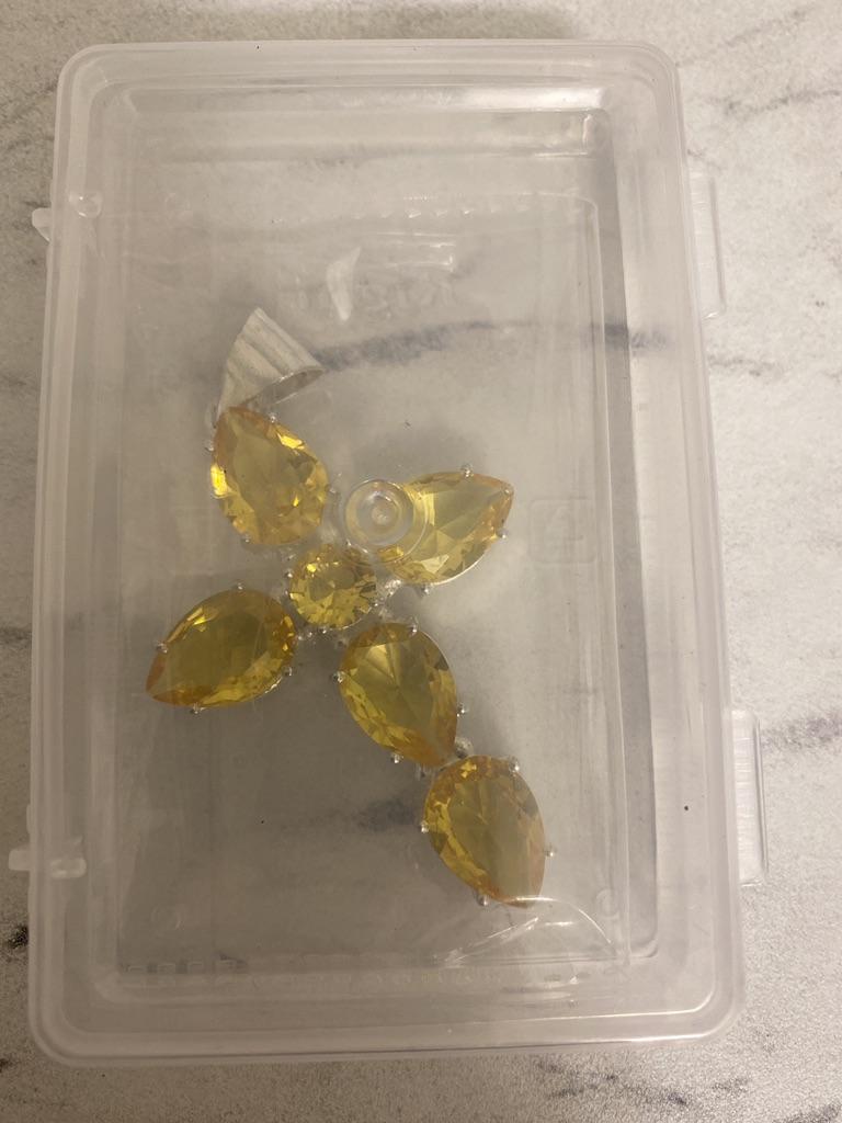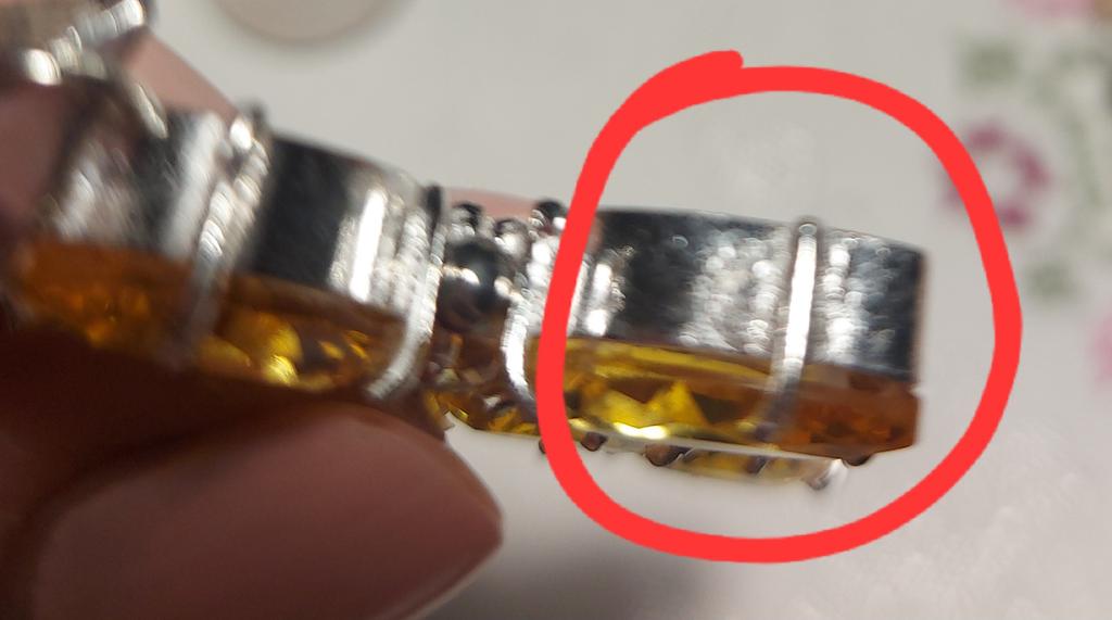 Пилили, лепили, камни повредили, проба не понятная...по цвету с настоящим серебром и цитрином похожи)) но мой экземплярчик... даже на уцененку не тянет)) идея- то неплохая была)) интересно, только мне так повезло?))