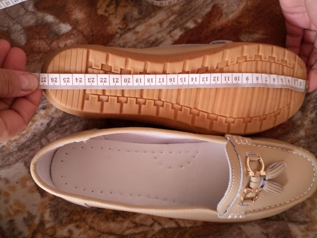 Очень приятные мокасины из натуральной кожи. Лёгкие и красивые. Покупаю уже вторые. Первые оказались велики брала в другом магазине. Заказала 40 но пришел 41 размер! Вернули половину стоимости за что благодарна службе поддержки. К покупке рекомендую. На мой 39 размер ноги идеально подошёл бы 40. 41 размер на широкую ногу!!! Рекомендую сразу заказывать силиконовый подпяточник т.к. со временем вафельная подошва проваливается, что бы долго носились. Покупая прекрасные товары на Джуме не забудьте купить несколько паучей корма для бездомных кошек и налить им воды.