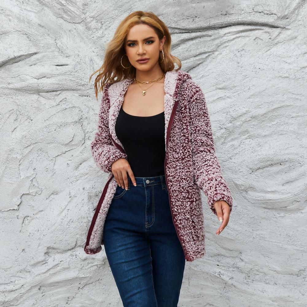 Осенне-зимняя толстая теплая молния средней длины, свободная, с меховым капюшоном