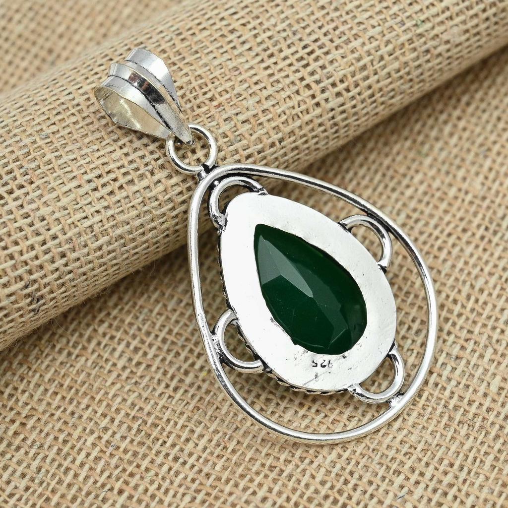 Ограненный зеленый оникс, драгоценный камень, стерлинговое серебро 925 пробы, необычные подвески ручной работы, ювелирные изделия