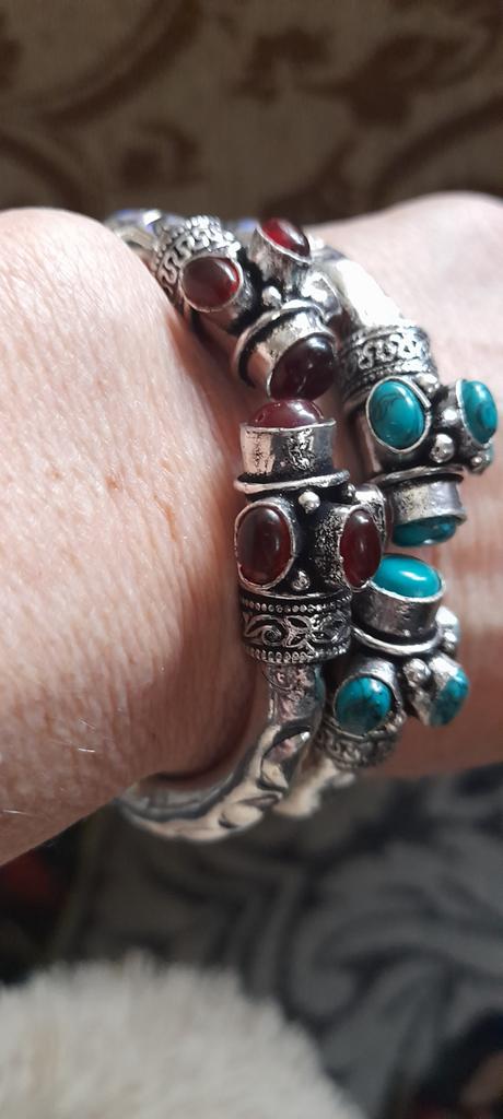 Бирюза не натуральная, прямо на металле какие то голубые наплывы. Но сам браслет - хорошая ручная работа в стиле этник. Много серебра и , в общем, все не плохо.
