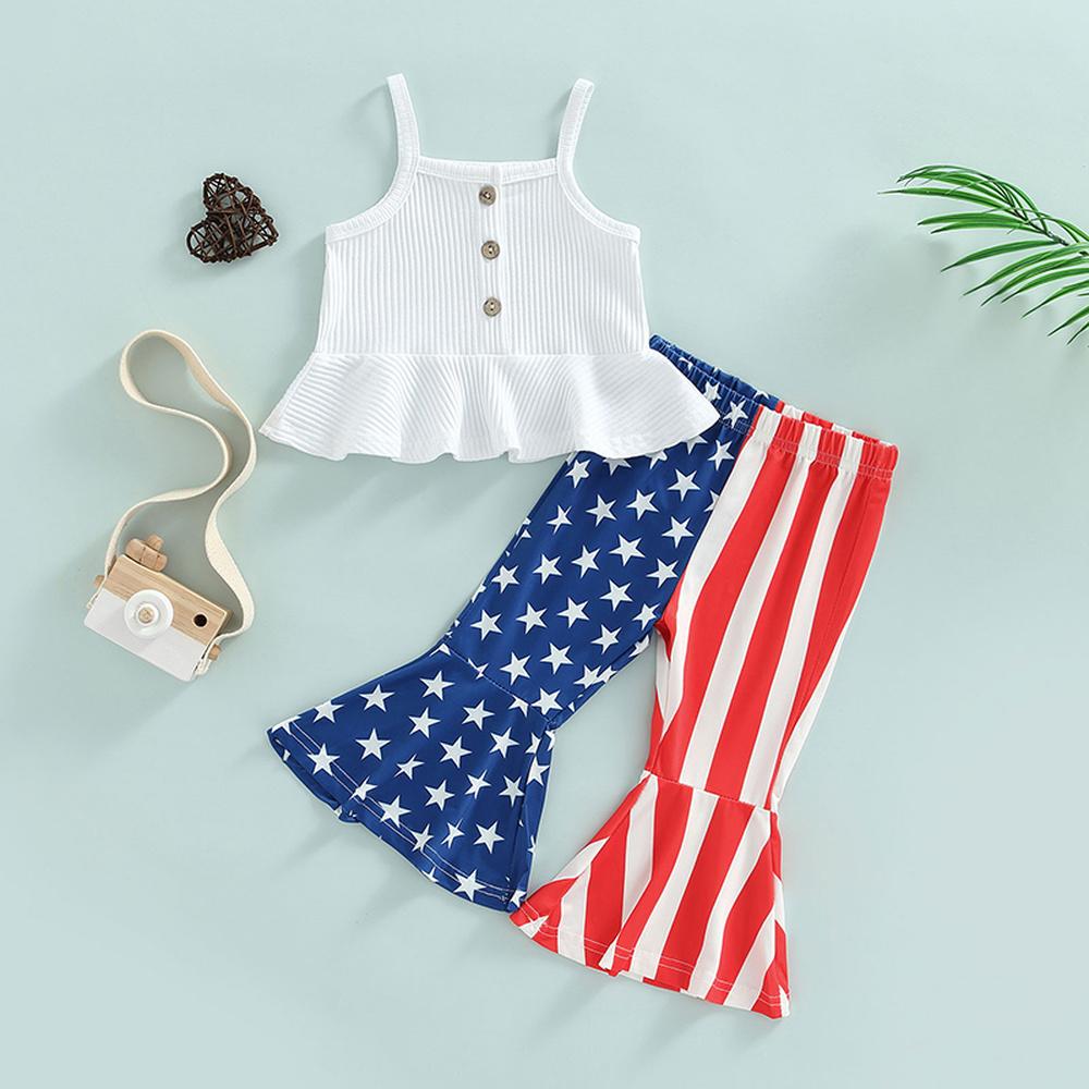 Белый жилет для маленьких девочек, топ и брюки-клеш с принтом в виде звезд, комплект из 2 предметов, одежда для детей 1–5 лет — купить товар онлайн с бесплатной доставкой по всему миру!