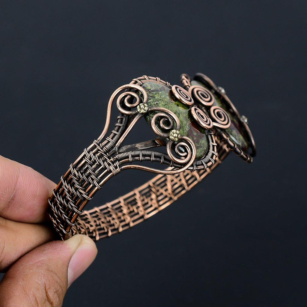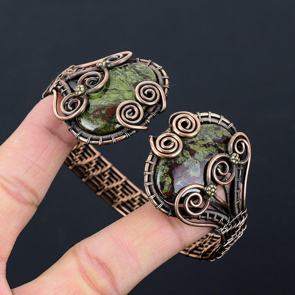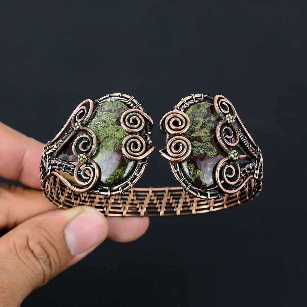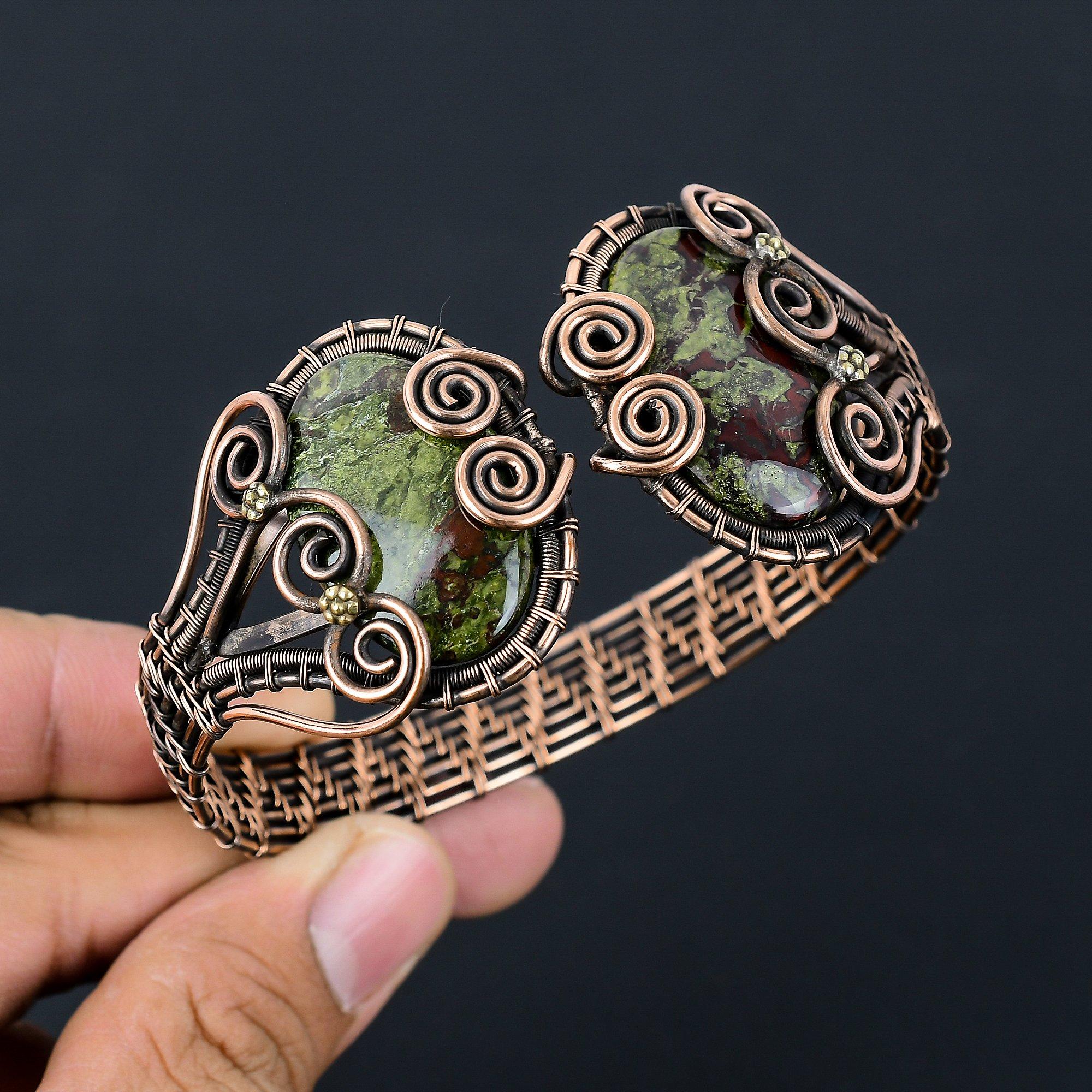 Драгоценный камень из яшмы с кровью дракона, чистая медная проволока, обернутая вручную манжета/браслет, регулируемые ювелирные изделия