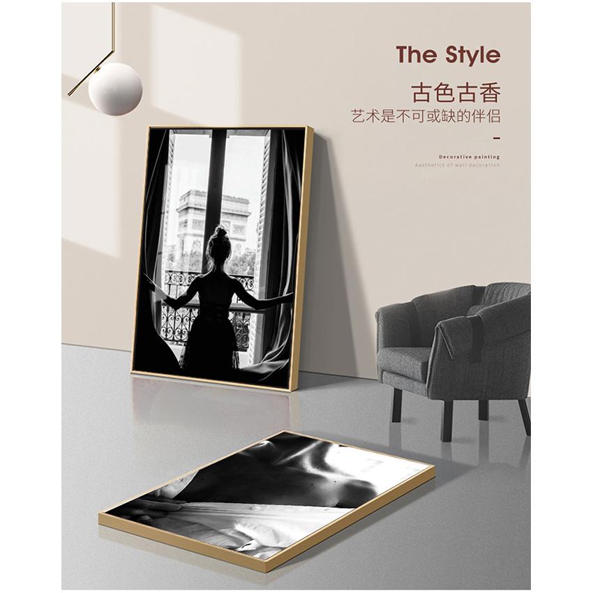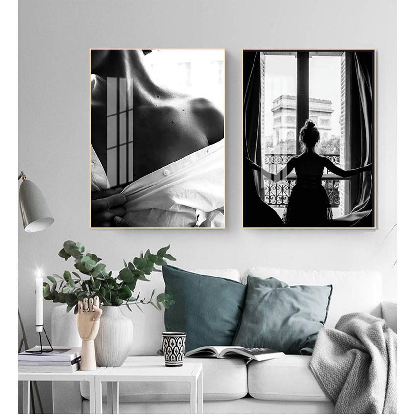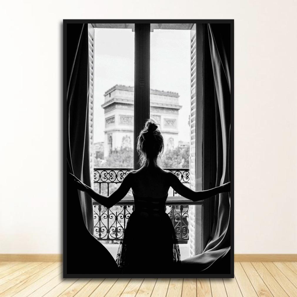 Модные красивые женские постеры, настенные художественные фотографии для гостиной, домашний декор, черно-белая сексуальная девушка с окном, скандинавская картина на холсте