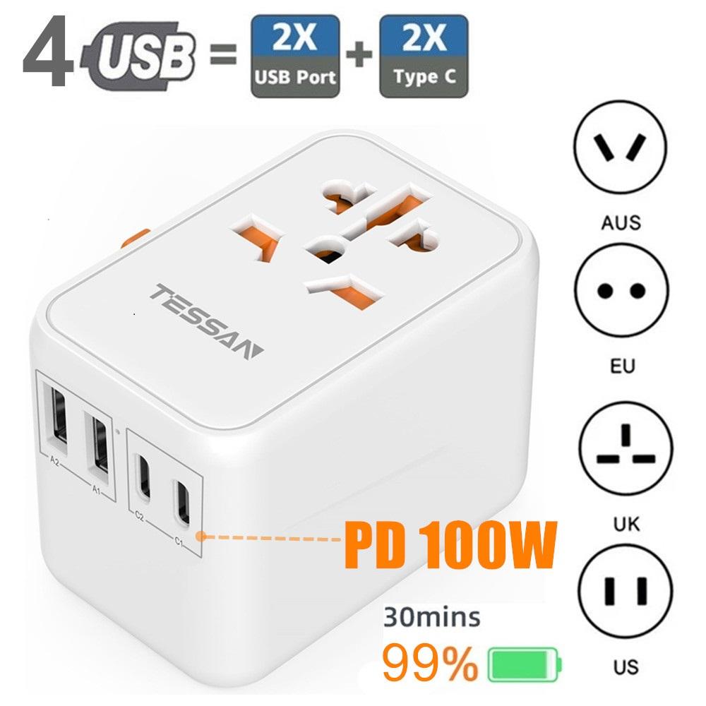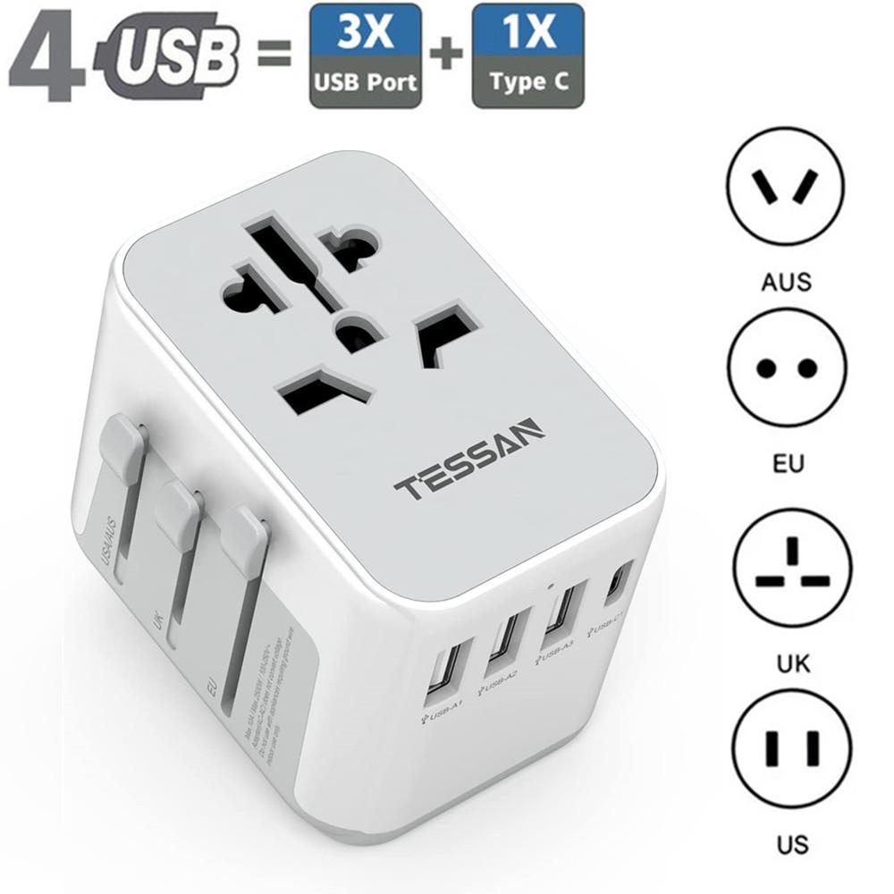 TESSAN Универсальный адаптер для путешествий Адаптер для путешествий по всему миру (2300 Вт) с 4 USB (3.4А)