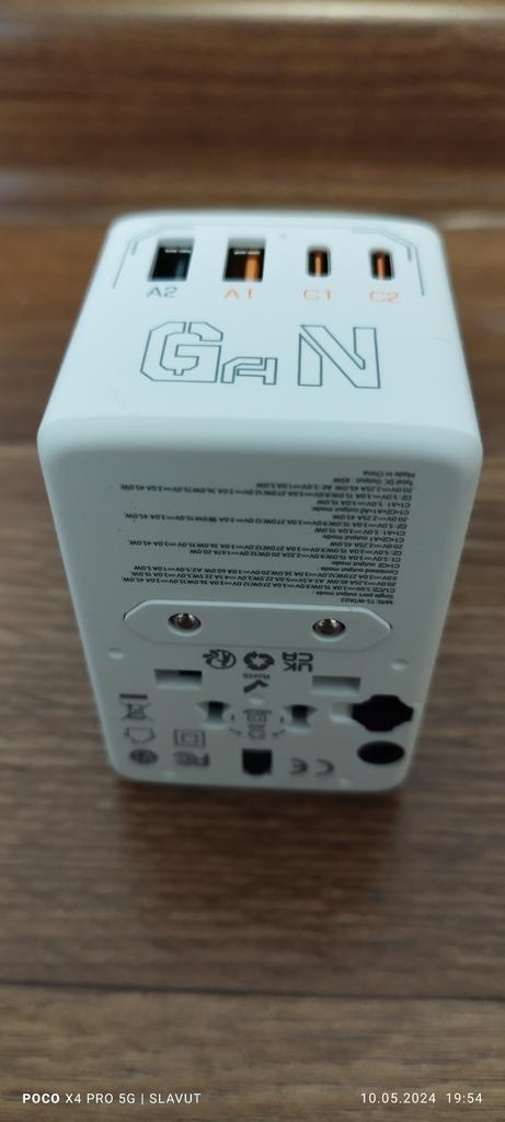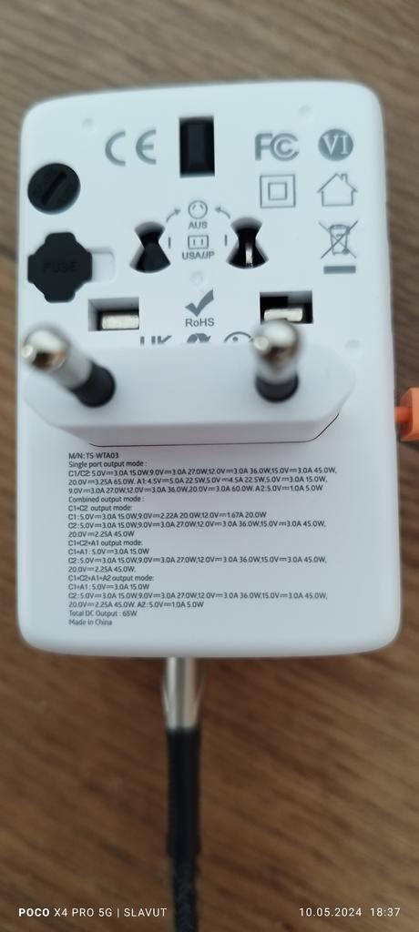 Адаптер TESSAN для путешествий с 4 USB и 1 разъемом. Каждый выход USB 5V / 2.4A MAX, общий выход: 5 В / 3,4 А МАКС.. Розетки переменного тока: поддержка 100-240 В переменного тока, 50 / 60 Гц. Максимальная мощность универсального адаптера составляет 2300 Вт при 230 В переменного тока.