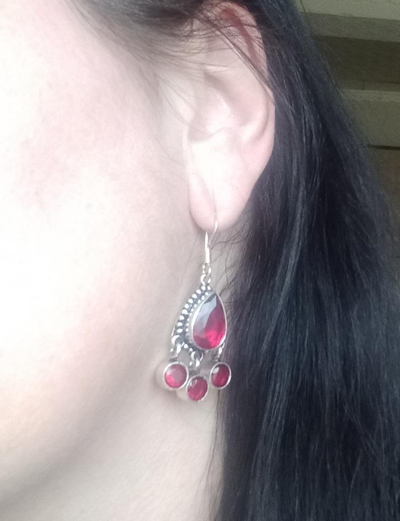 Серьга из стерлингового серебра 925 пробы с драгоценным камнем из мозамбикского граната ручной работы