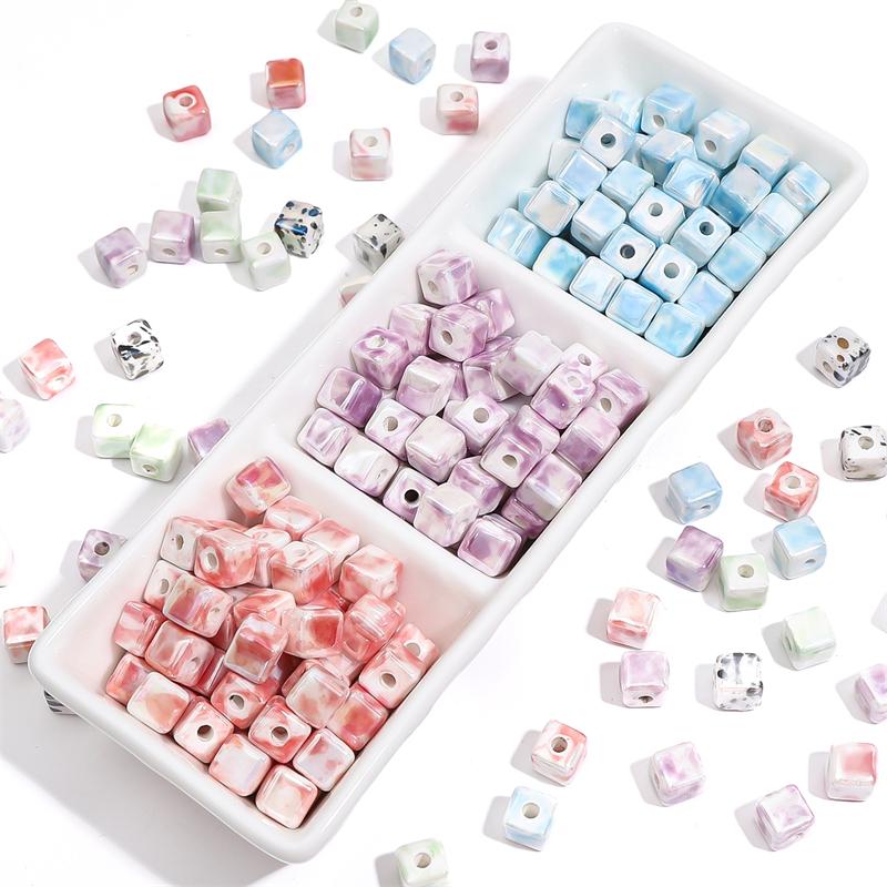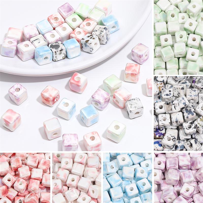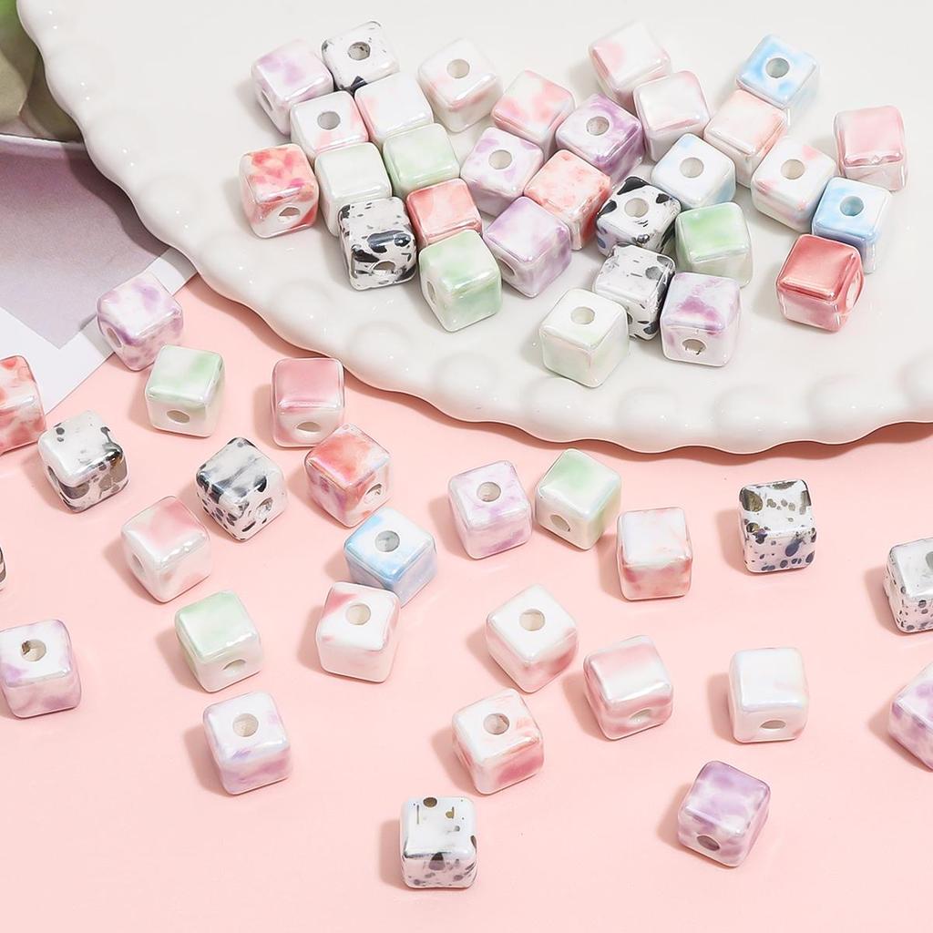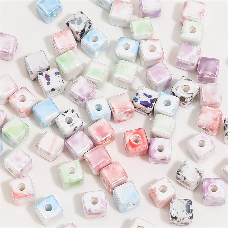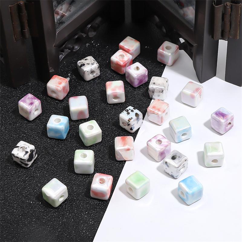 8 мм 10 шт. керамические бусины-кубы с брызгами чернил для изготовления ювелирных изделий DIY браслет, серьги, ожерелье, цепочка для телефона