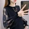 Вязаный свитер женский новый кружевной пряжа с рукавами 2023 женский осенний свитер пуловер с круглым вырезом свитер свободная нижняя рубашка
