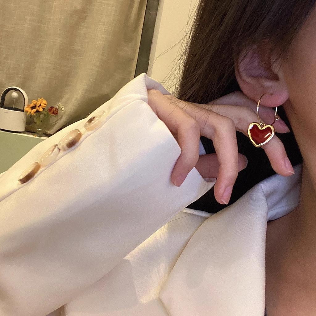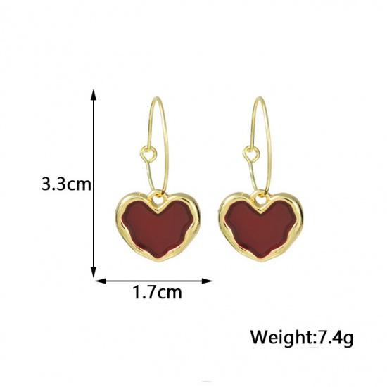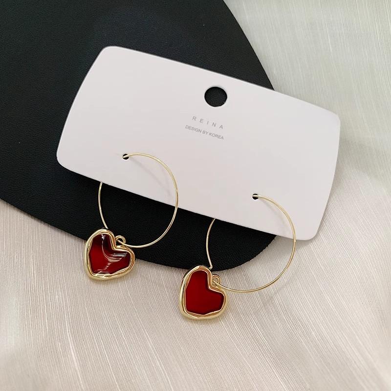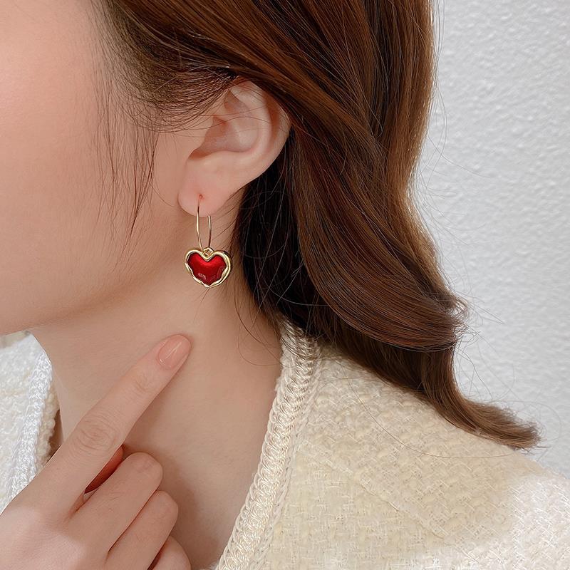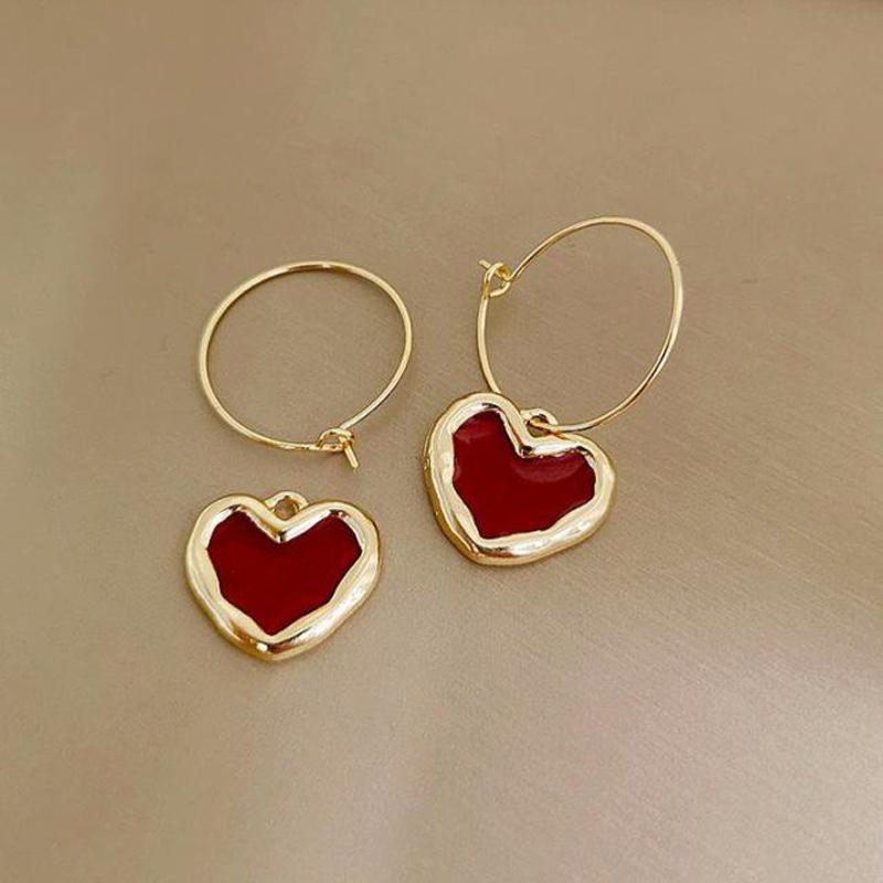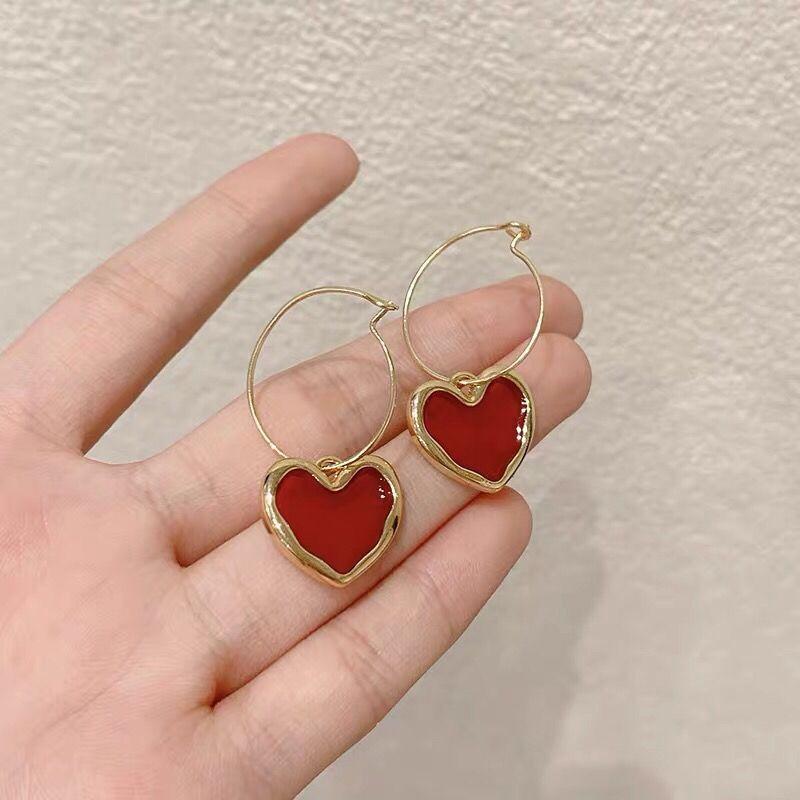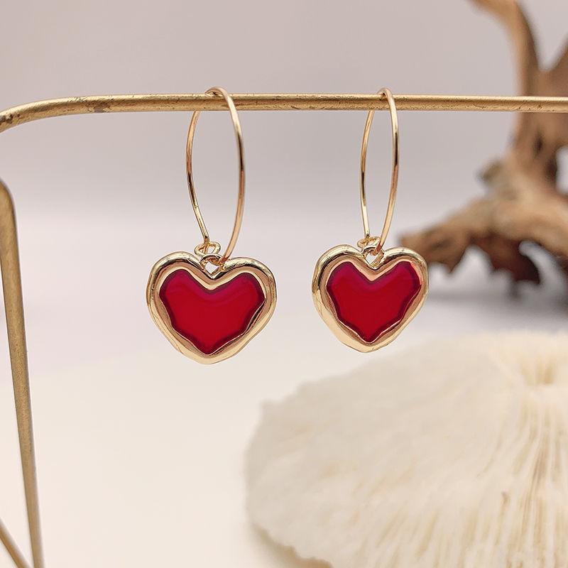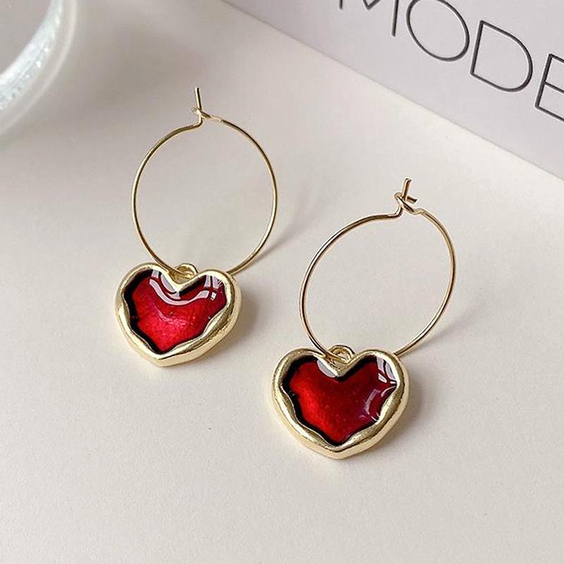 Корейские новые милые бордовые серьги с эмалью и сердечками для женщин и девочек, металлические серьги золотого цвета с любовью, романтические висячие висячие серьги