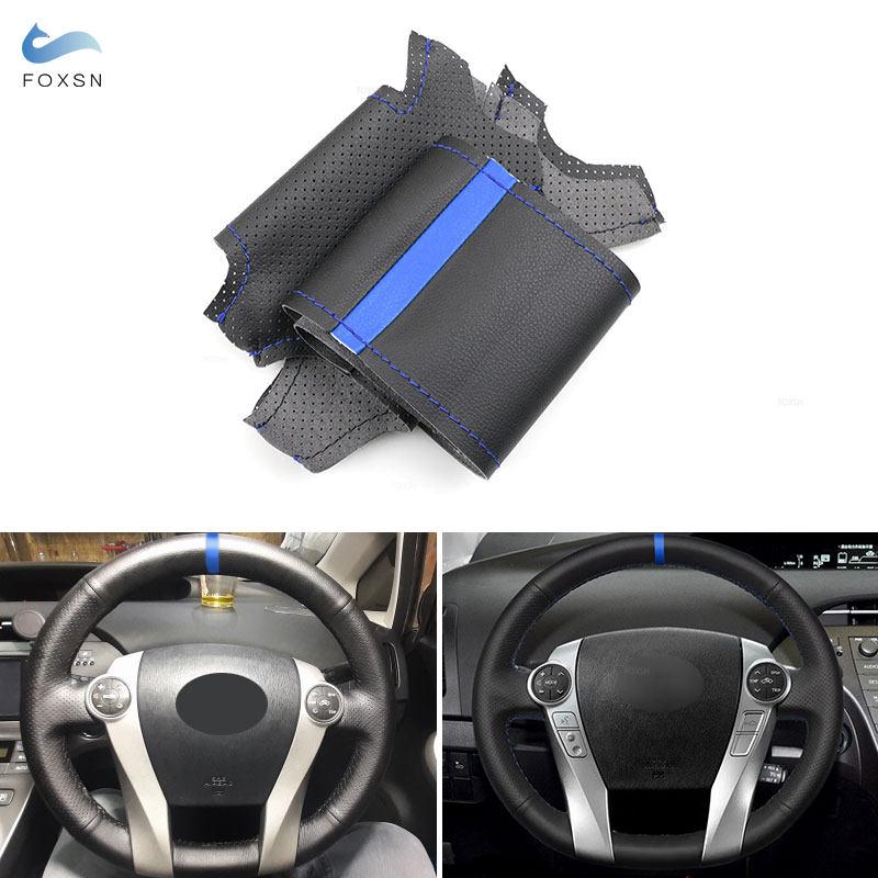 Для Toyota Prius 30 XW30 2009 2010 2011-2015 Prius C US 2012-2017 Автомобильный кожаный чехол на руль Декор черный с синим — купить товар онлайн с бесплатной доставкой по всему миру!