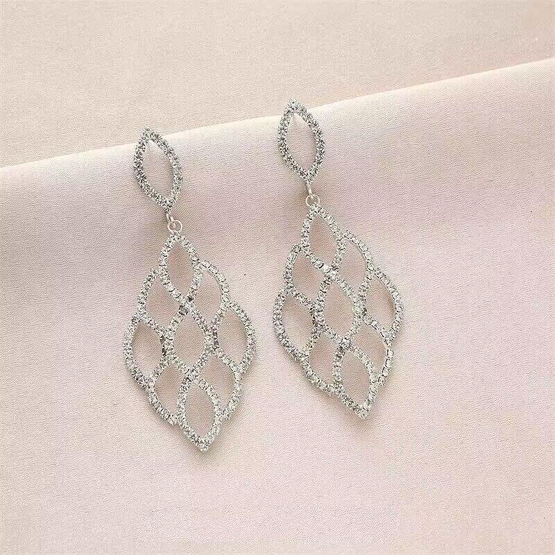 Модные женские серьги-крючки из нержавеющей стали с полым кристаллом в форме листа, подвесные украшения для невесты, свадебный подарок