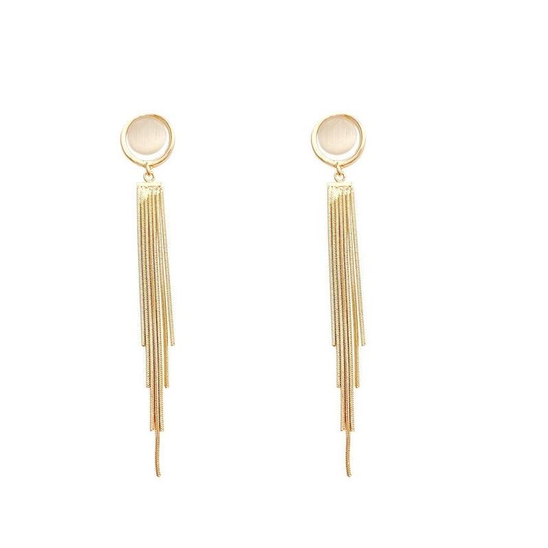 Корейские винтажные длинные серьги-капли с кисточками для женщин золотого цвета, геометрические модные ювелирные изделия класса люкс, подвесные