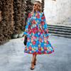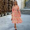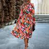 Осенне-зимнее женское плиссированное длинное платье для отдыха с круглым вырезом и длинными рукавами с принтом