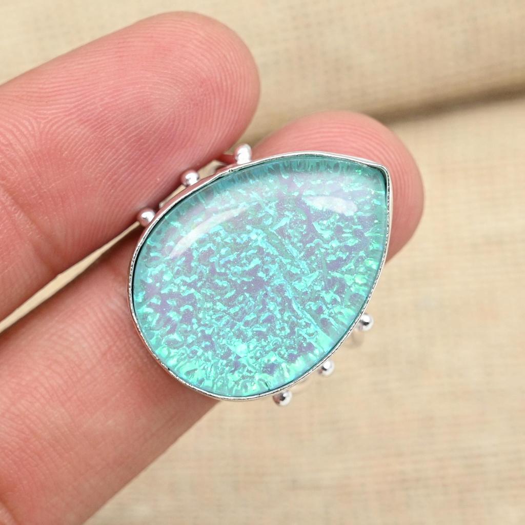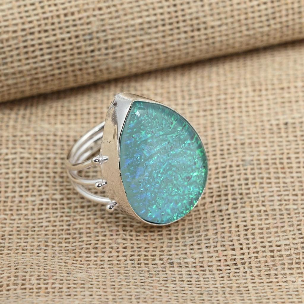 Кольцо ручной работы из чистого серебра 925 пробы с синим тройным опалом. Потрясающие ювелирные изделия из драгоценных камней.