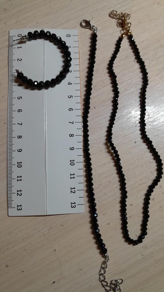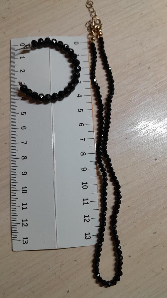 Хорошенькое колье, советую. Блестит. Для сравнения размера бусин сфоткала серьгу, браслет. Общая длина колье 41см. Только бусы 33 см. Продавца советую, товар пришел раньше и хорошо упакован 👍.