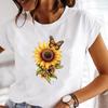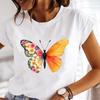 (Азиатский размер) Футболка, верхняя одежда, трендовая милая модная футболка с цветочным принтом и бабочкой, повседневная женская футболка с коротким рукавом и принтом, женская футболка с рисунком
