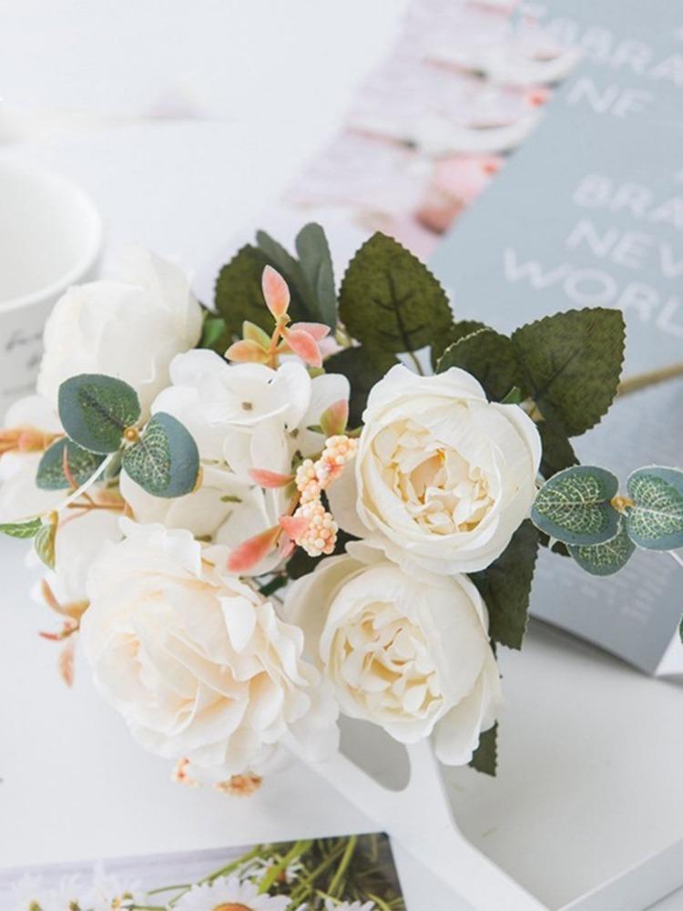 2 пучка искусственных цветов пиона, ретро шелковая роза, гортензия, винтажный свадебный букет, домашнее свадебное украшение, искусственный цветок