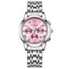 Женские часы, серебряные водонепроницаемые светящиеся календари из нержавеющей стали, модные кристально-розовые женские кварцевые часы