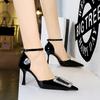 BIGTREE/Европейский стиль, банкетные сандалии на высоком каблуке с острым носком, одно слово, с металлической пряжкой, женские полые сандалии