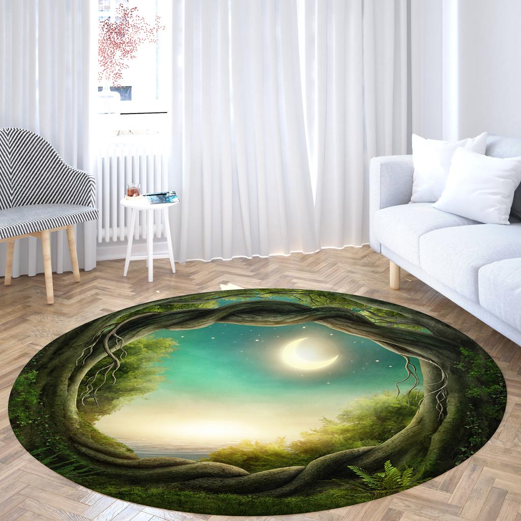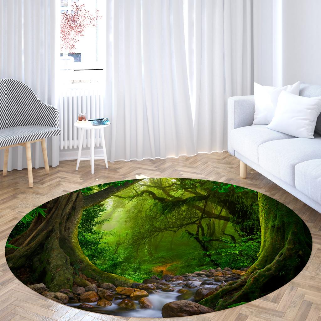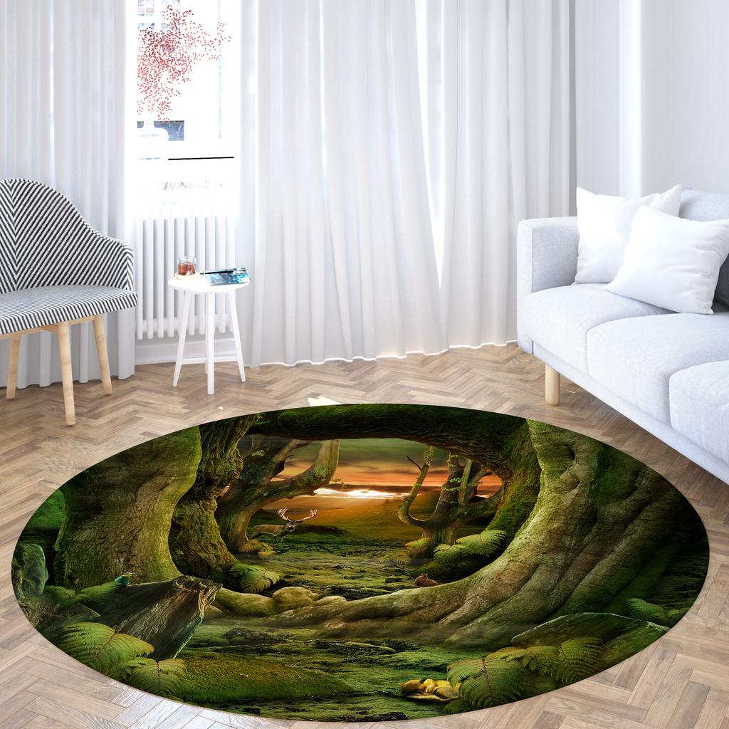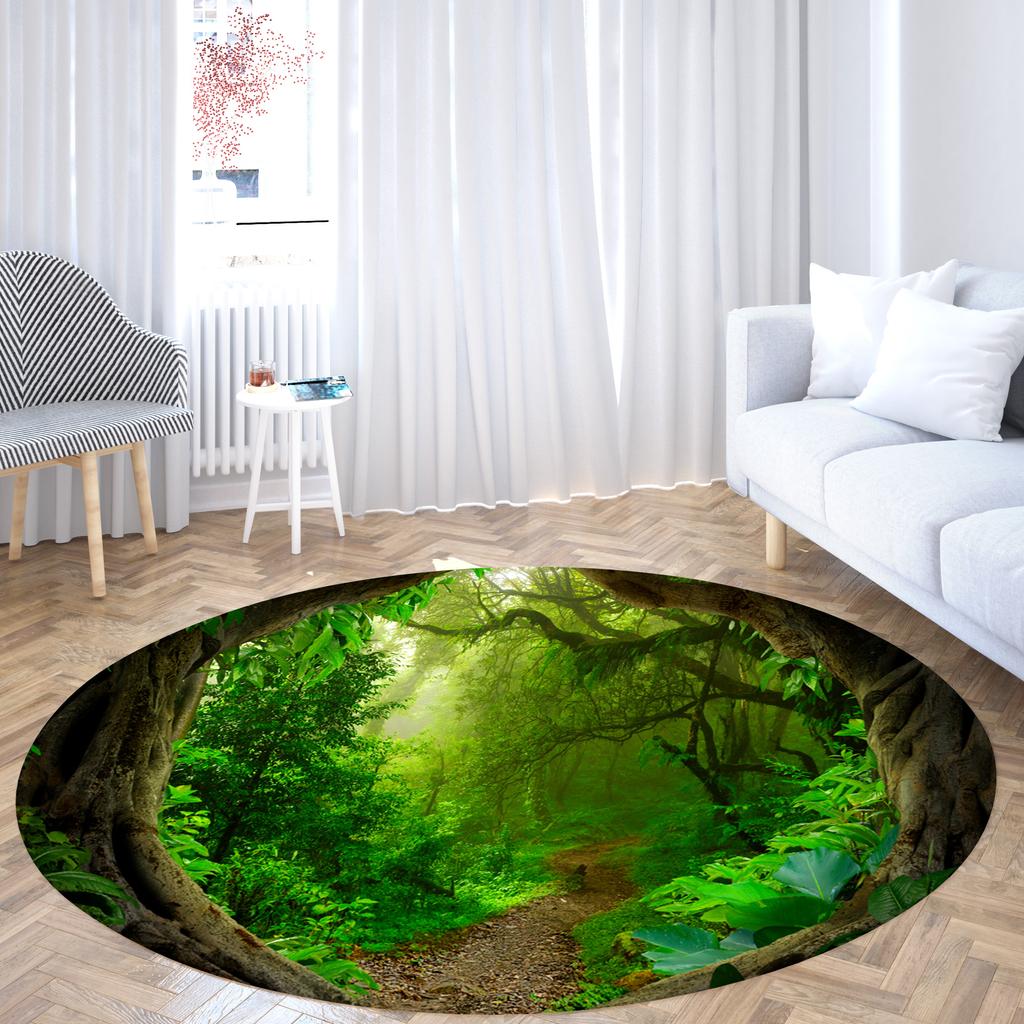 Гостиная, спальня, входная дверь, домашний ковер, зеленое отверстие под дерево, круглый ковер с узором, круговой коврик с принтом