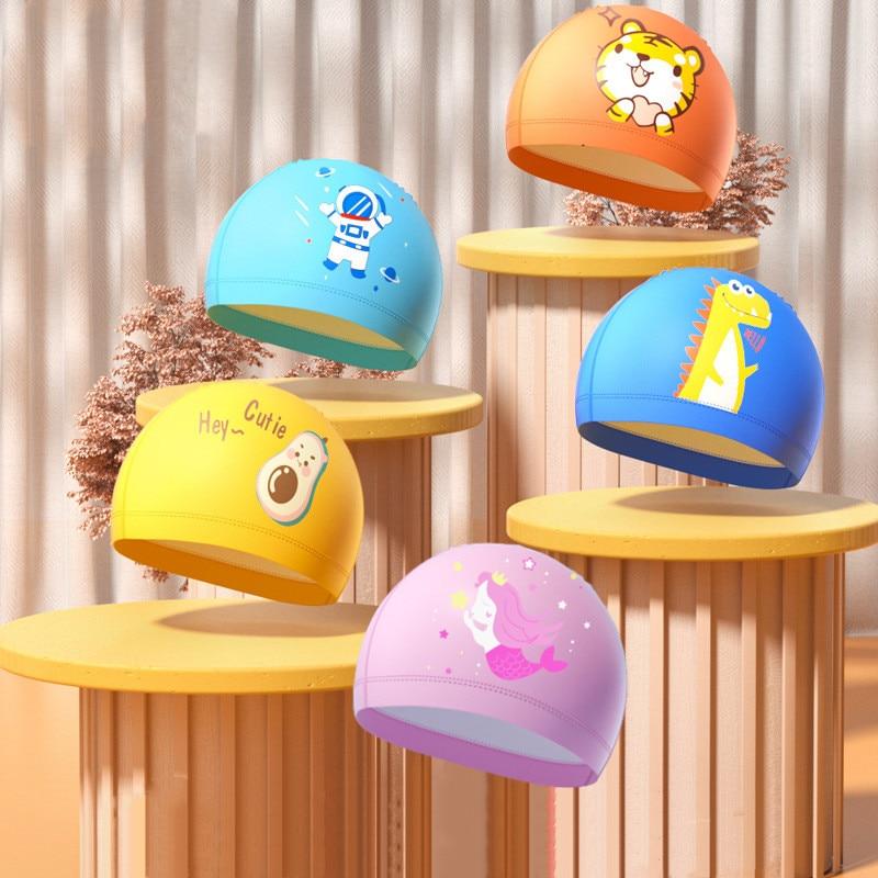Детские шапочки для плавания для мальчиков и девочек, детская милая шапочка для плавания с героями мультфильмов, высокоэластичная водонепроницаемая шапочка для защиты ушей из искусственной кожи