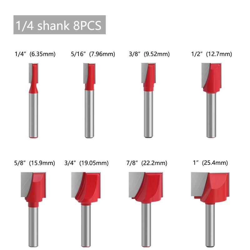 8 шт., чистящая нижняя фреза, набор прямых фрез, чистая фреза, деревообрабатывающий станок, 6 мм, 1/4 дюйма, хвостовик