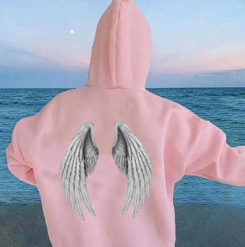 Женские толстовки с принтом крыльев Harajuku, объемная куртка с капюшоном и длинными рукавами, женская осень 2023, хип-хоп, панк, толстовка, топ