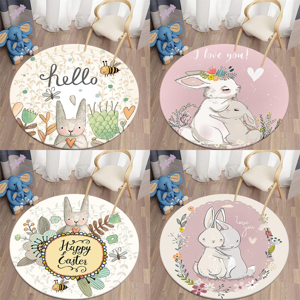 Круглый ковер с мультяшным милым кроликом и принтом для дома, гостиной, спальни, детской комнаты, украшение для пола, мягкий ковер