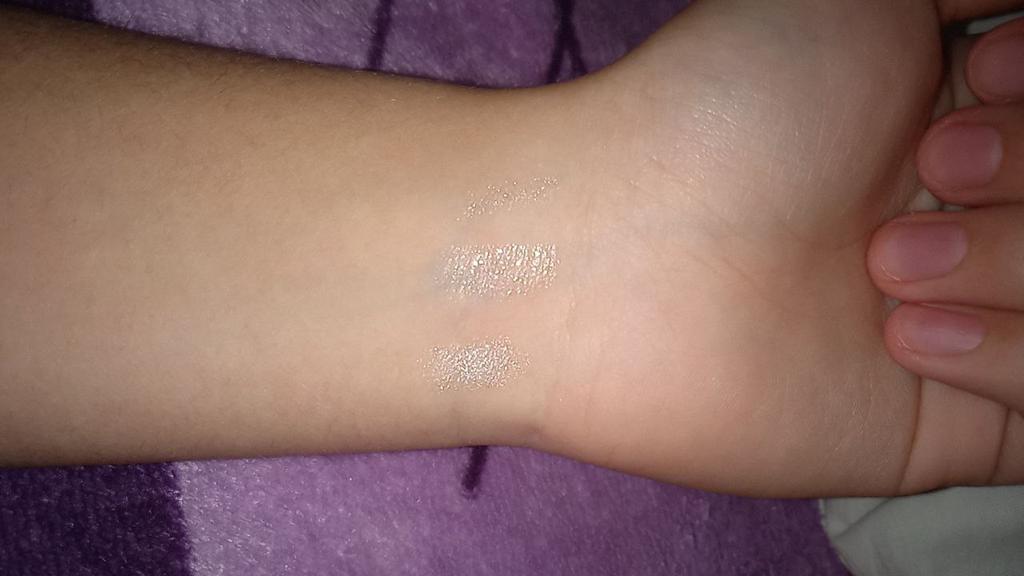 Вроде прикольно, давно о таком мечтала, если хорошенько наслоить, то будет прекрасный блеск. На одном из фото, где рука, разная наслойка хайлайтера, от слабого давления, до сильного и нескольких мазков. Если хотите слегка растушованый результат, то легонько проведите пальчиком, т.к. он суперски легко тушуется, и хайлайтера практически не будет видно, если сильно растушевать. Его минус в том, что его нужно много раз наслаивать, и немного сильнее прижимать, что бы хорошо блестел. А также когда я нанесла его на кончик носа, то он стёр тоналку и пудру с того места, и при свете он сиял, а без света было темноватое пятнышко;( Пользоваться наверное буду очень редко. Мне не очень понравился товар:<