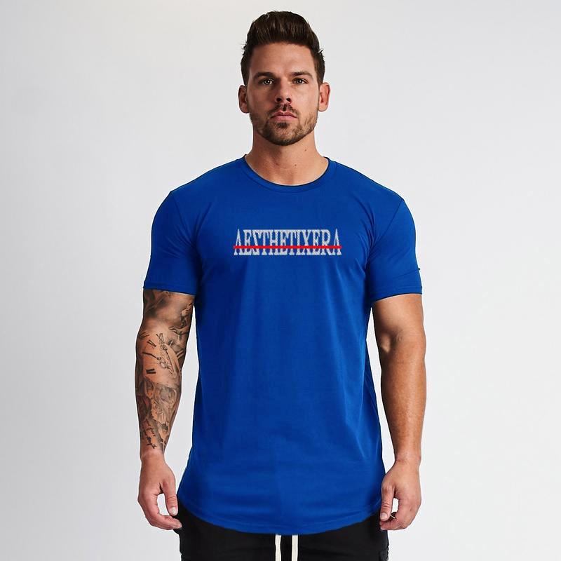 Muscleguys Летний легкий прохладный тренировочный топ с круглым вырезом, дышащий фитнес-бег с короткими рукавами