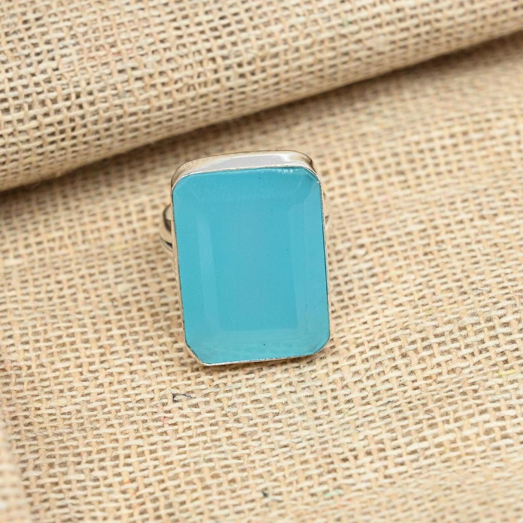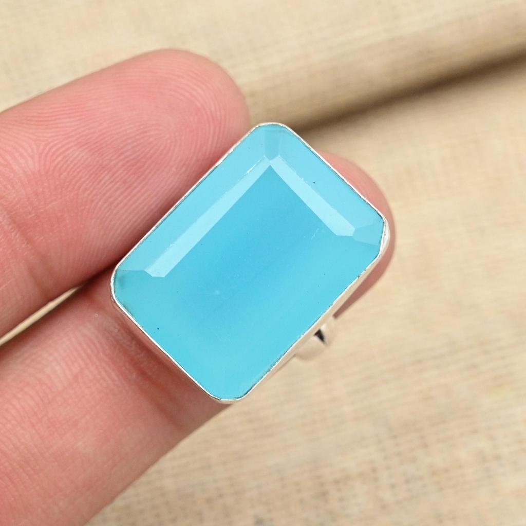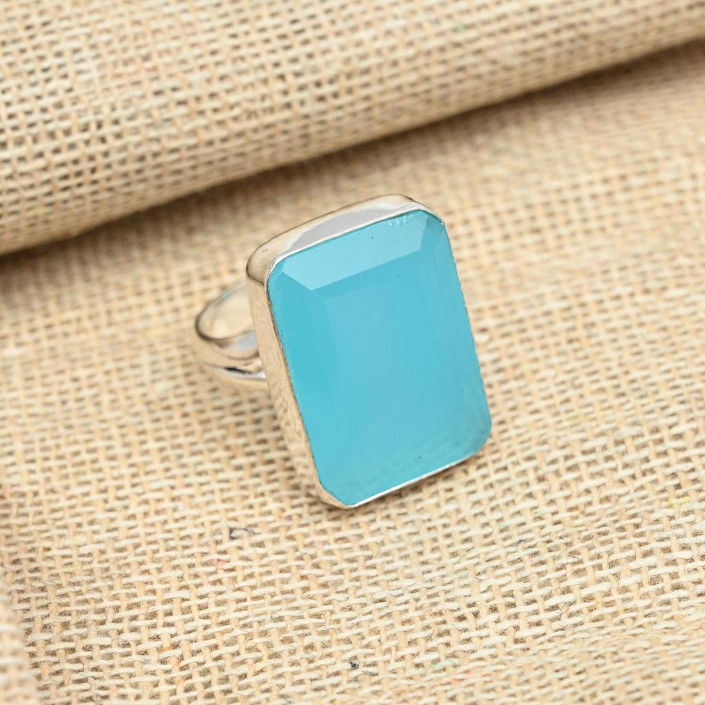 Граненый синий халцедон стерлингового серебра 925 пробы ювелирные изделия ручной работы привлекательное подарочное кольцо