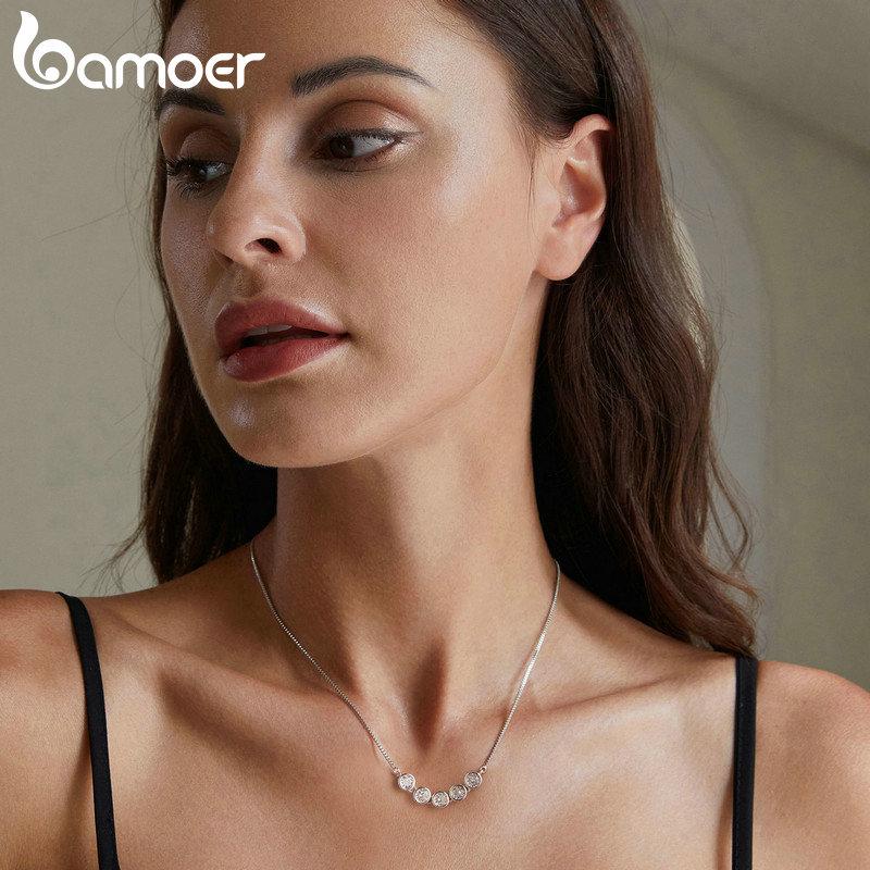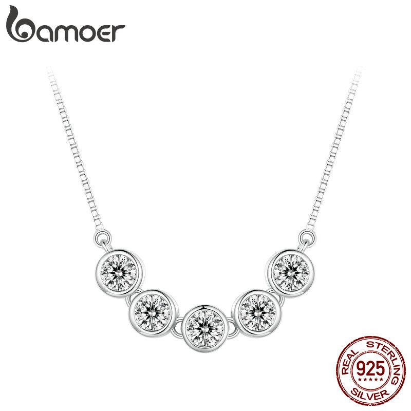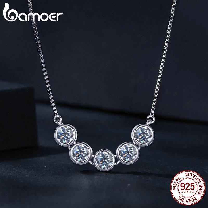 BAMOER, стерлинговое серебро 925 пробы, блестящее круглое ожерелье из муассанита, имитирующая бриллиантовую цепочку на шею для женщин, подарок на день Святого Валентина