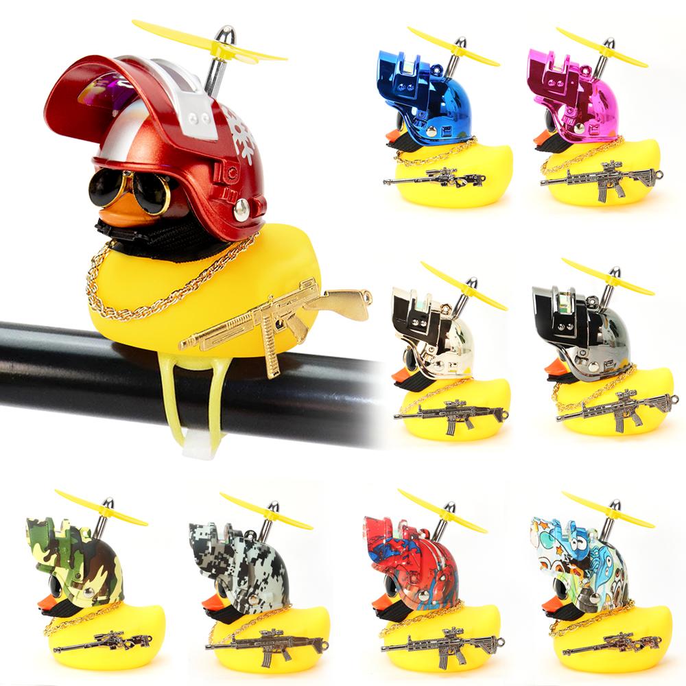 Крутая вооруженная утка в интерьере автомобиля, желтая утка со шлемом для велосипедного двигателя со стробоскопом, автомобильные аксессуары