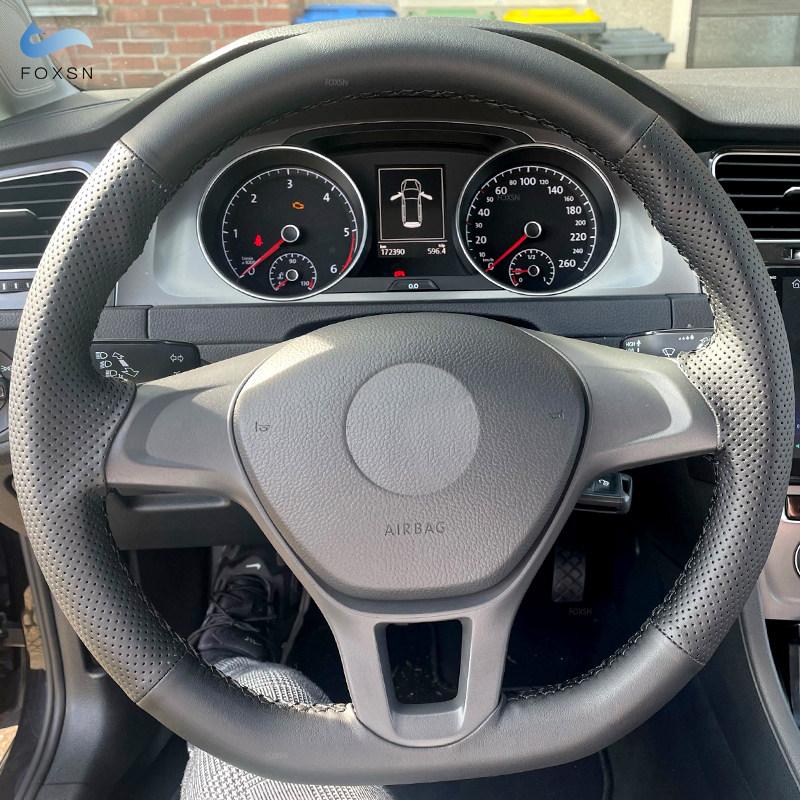 Автомобильные аксессуары, черно-красная перфорированная кожаная накладка на руль для VW Golf 7 MK7 Jetta Passat B8 New Polo Tiguan — купить товар онлайн с бесплатной доставкой по всему миру!