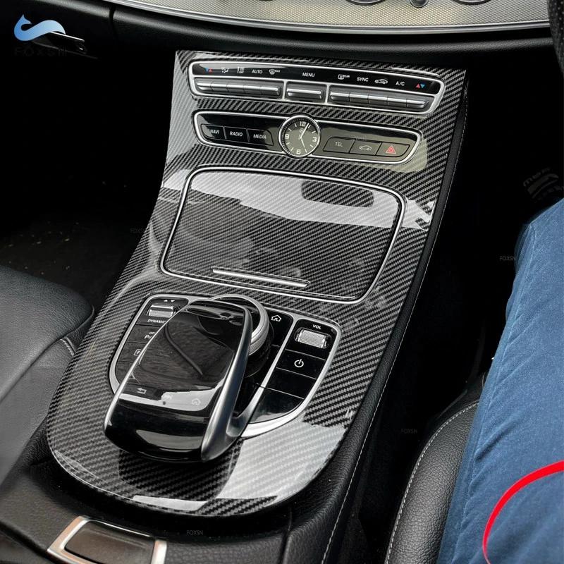 Автомобильные аксессуары, текстура из углеродного волокна, внутренняя консоль, крышка панели передач, накладка, наклейка для Mercedes Benz E-Class W213 2016