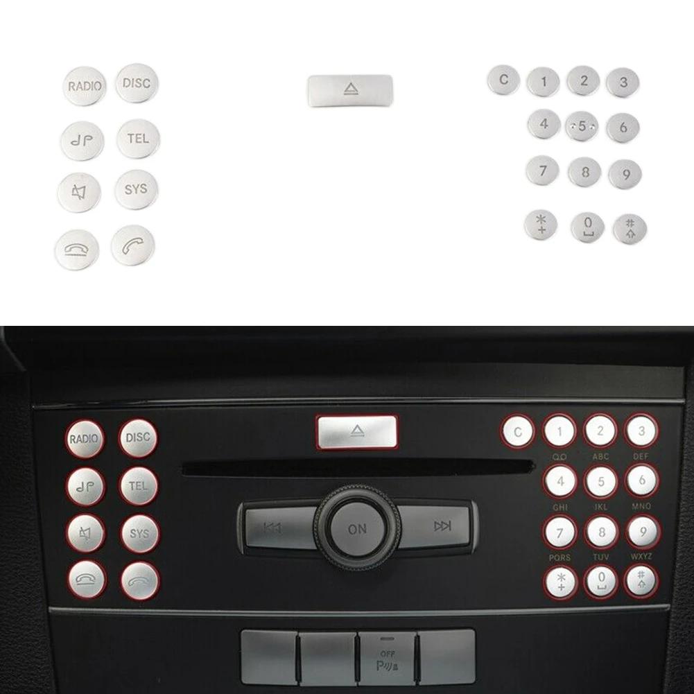 22 шт./компл. серебристый ABS автомобильный кондиционер CD панель кнопка декоративная наклейка для Mercedes-Benz C Class W204 GLK X204 — купить товар онлайн с бесплатной доставкой по всему миру!