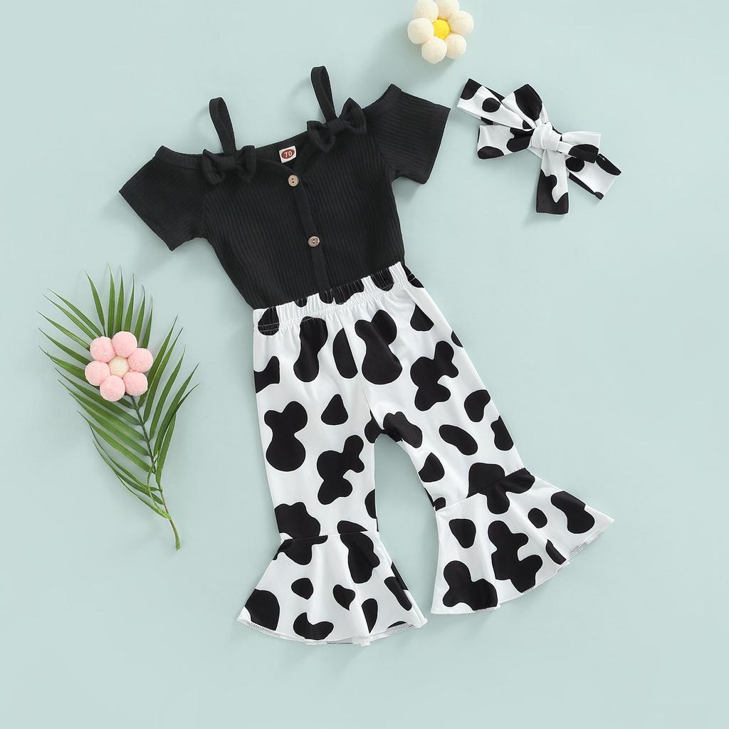 3 шт. комбинезон для маленьких девочек, милый стильный комбинезон с короткими рукавами и подтяжками с бантом + брюки-клеш в нестандартную форму + головной убор