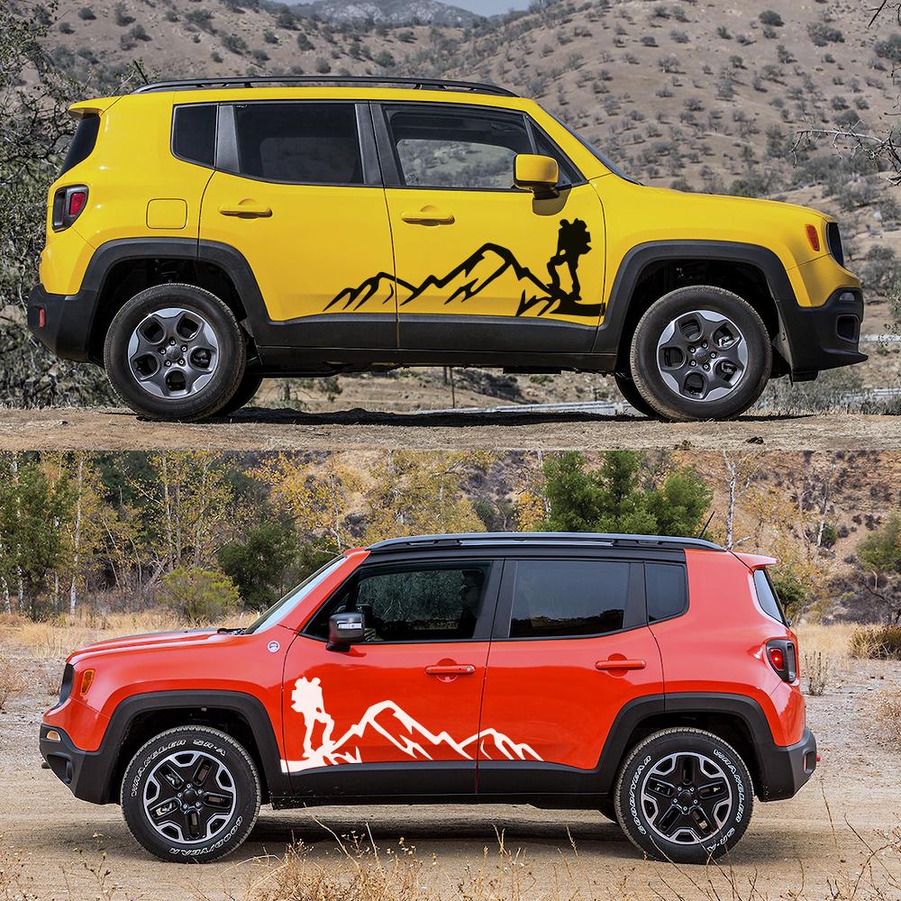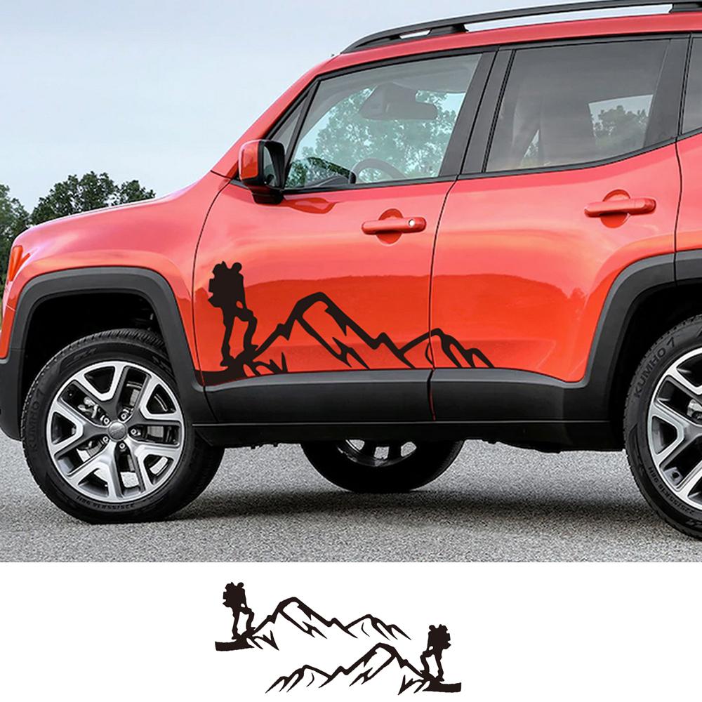 Для Jeep Renegade 2 шт., боковые наклейки на дверь автомобиля, спортивная горная графика, авто, сделай сам, Стайлинг, виниловая пленка, декор, наклейка, тюнинг