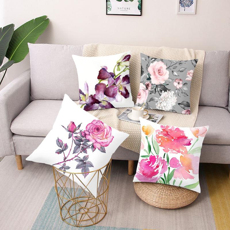 Квадратная подушка с цветочным принтом, чехол для автомобильного дивана, офисного кресла, наволочка, простой домашний интерьер