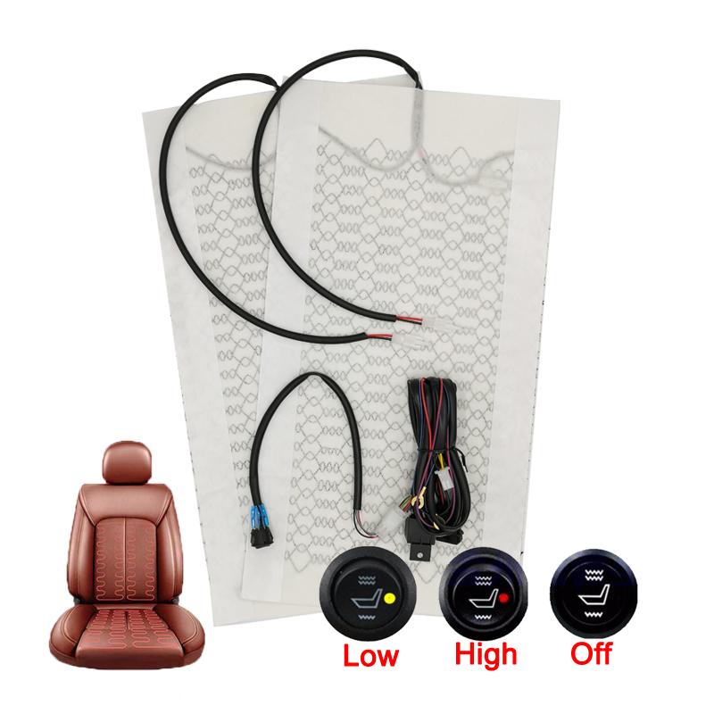 Универсальный встроенный обогреватель автомобильного сиденья, комплект 12 В, грелки из углеродного волокна, комплект подушек с круглым переключателем, подходит для установки 1