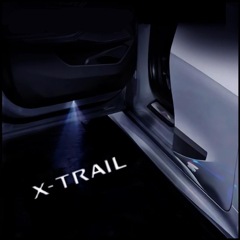 2 шт., лампа приветствия на двери автомобиля, логотип, проектор, светодиодный светильник для Nissan X-trail T30 T31 2001-2014, интерьер автомобиля