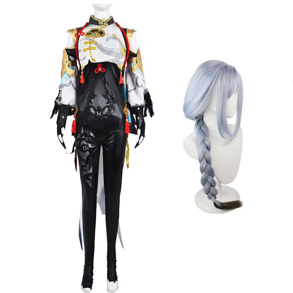 Shenhe Косплей Игровой Костюм Shenhe Комбинезон Парик Shen He Боевые Костюмы Косплей Аниме Наряды Игровой Костюм
